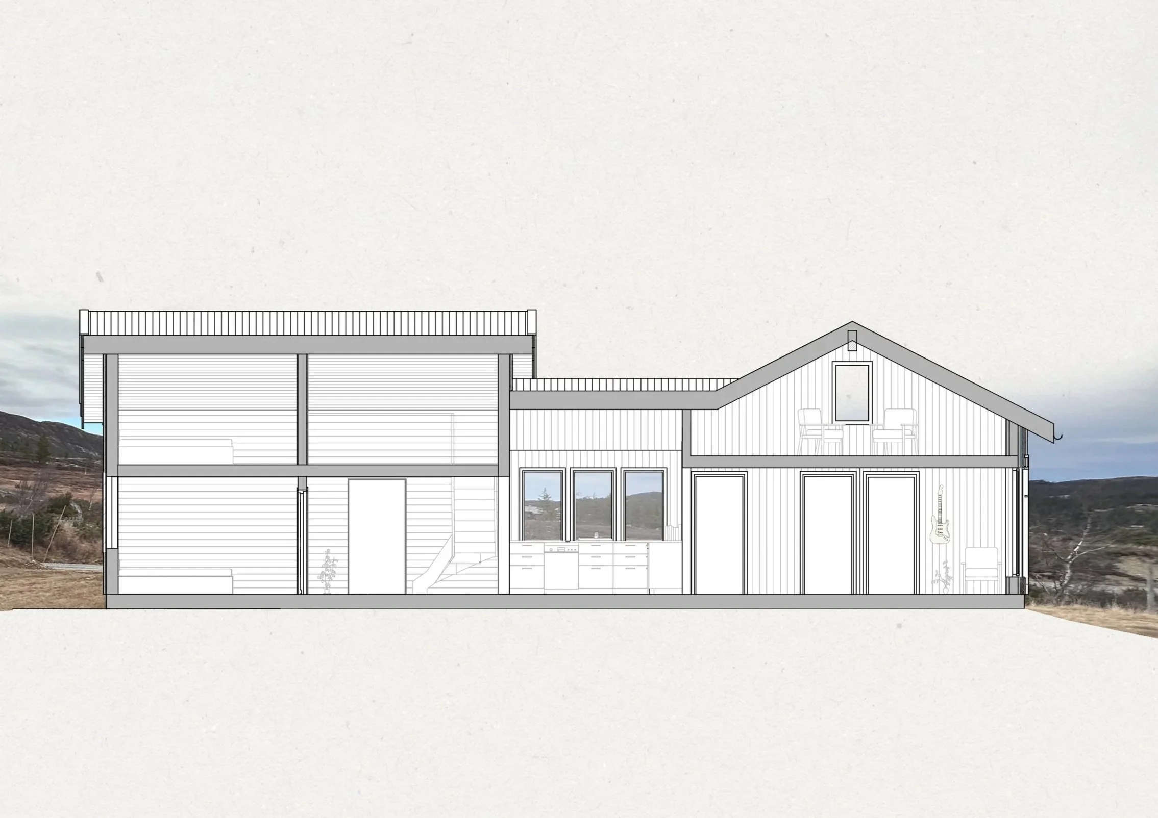 To both separate and connect the old and new, the extension is rotated 90 degrees and built slightly lower. This layout maintains the traditional formation of a highland støl, while modern windows and subtle variations in the cladding introduce a contemporary touch to the facade.